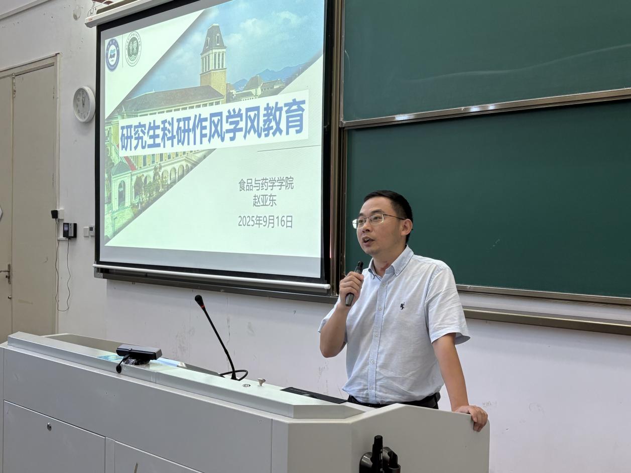 为了引导新生树立正确的科研态度,强化科研诚信意识,营造良好的学术氛围,2025年9月16日下午,yl88858永利集团在公共教学楼117教室成功举办了研究生新生始业教育系列之研究生科研诚信与学风建设专题讲座。本次讲座由学院学术副院长赵亚东教授主讲,2025级全体研究生新生共200余人参加了此次讲座。会议由学院辅导员郑余琦主持。