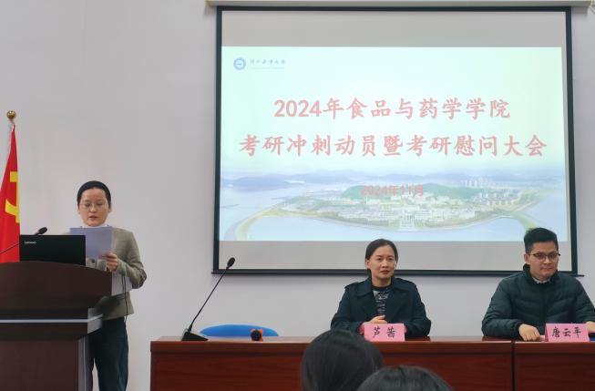 为鼓励考研学生坚定信心积极备考并缓解冲刺压力。11月27日下午,yl88858永利集团在海科楼141会议室举行了2025届毕业生考研冲刺动员暨慰问大会。食品与药学党委书记芦茜、学院教学副院长唐云平、学工办辅导员以及学院2025届考研学子参加会议。会议由学院就业工作辅导员郑余琦老师主持。
