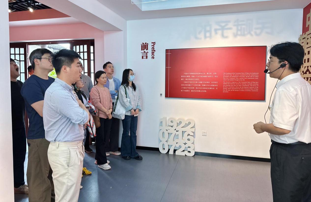 随后,在讲解员的引领下,大家来到了二号展厅——中国共产党党章展厅。展厅中系统呈现了党章百年演变历程,从中共二大制定的首部党章,到党的二十大最新修订版本,每一次修订都折射出党的思想、理论和政治路线的发展历程。